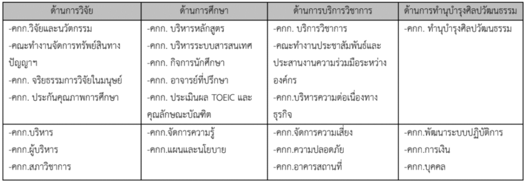 มหาวิทยาลัยแล้ว ยังมีการบริหารผ่านคณะกรรมการ(คกก.)/คณะทํางาน ที่เกี่ยวข้องกับการกํากับ ติดตาม