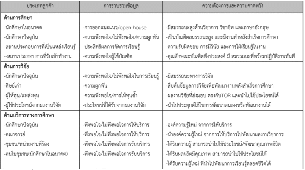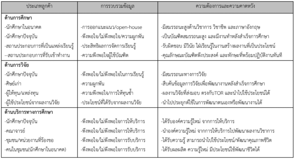 ลูกค้าและผู้มีส่วนได้ส่วนเสีย ของมหาวิทยาลัยจําแนกตามผลิตภัณฑ์หลัก มีความต้องการและความ