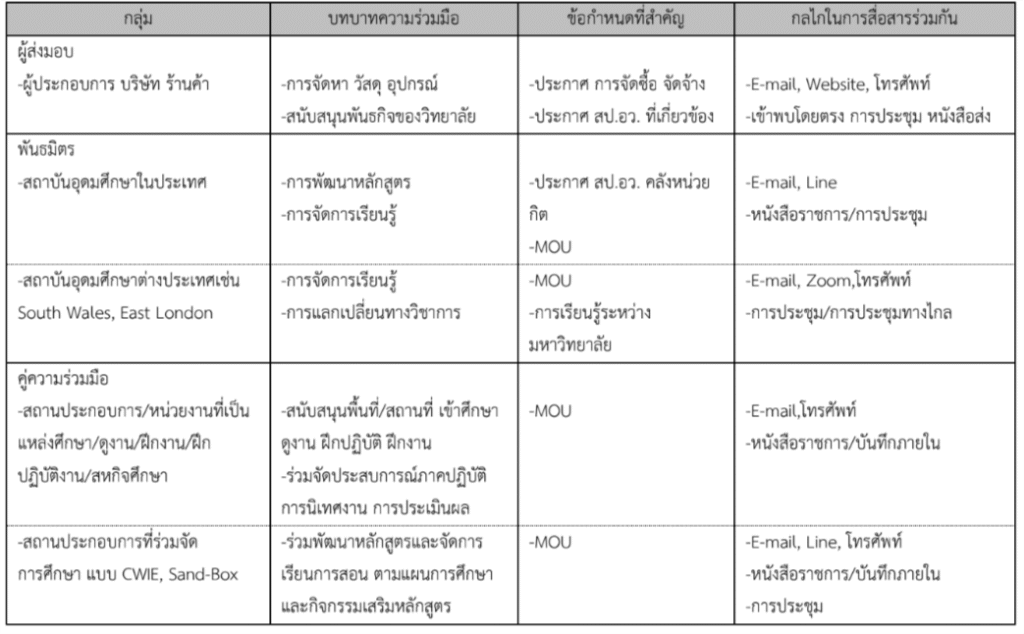 มหาวิทยาลัย ใช้กระบวนการความร่วมมือ กับ ผู้ส่งมอบ พันธมิตร และคู่ความร่วมมือ เพื่อจัดทํา