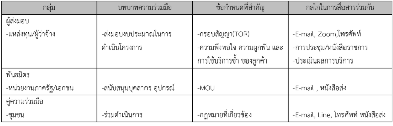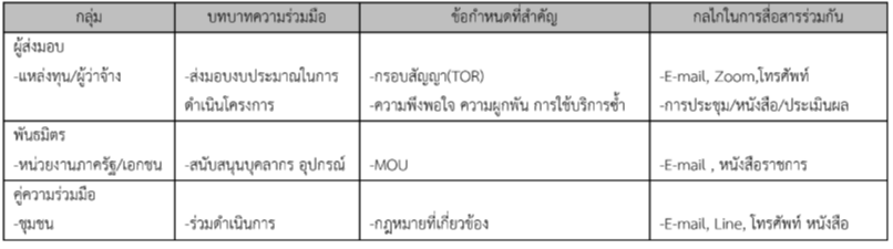 บทบาทความร่วมมือ ข้อกําหนดที่สําคัญ และกลไกในการสื่อสารร่วมกัน ในแต่ละผลิตภัณฑ์ ดังนี้