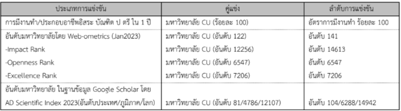 มหาวิทยาลัยมีการกําหนดคู่แข่งที่มีบริบทเหมือนกัน มีประเด็นการแข่งขันใกล้เคียงกันเพื่อให้บรรลุ