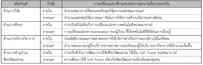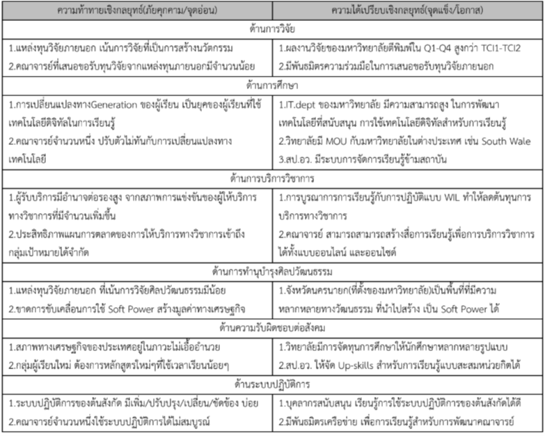 ได้เปรียบทางกลยุทธ์ของมหาวิทยาลัย นํามาวิเคราะห์ SWOT ทําให้ทราบปัจจัยที่มีผลต่อการเปลี่ยนแปลง