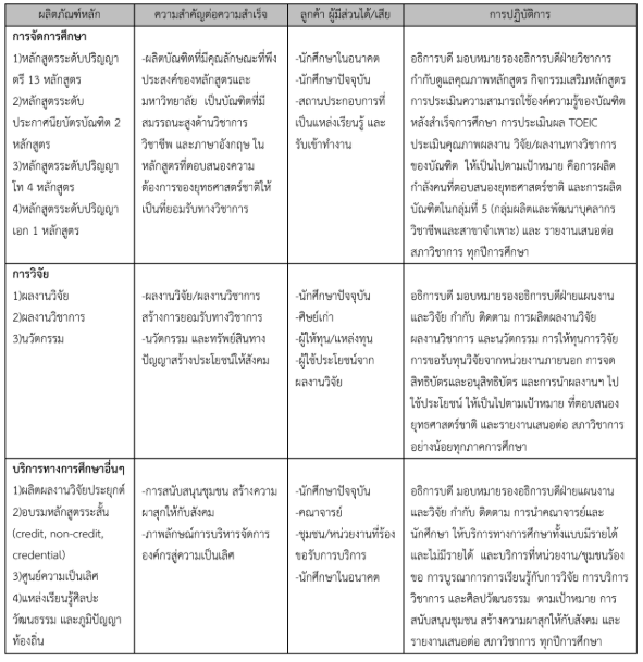 วิสัยทัศน์ โดยเทียบเคียงผลการดําเนินการมหาวิทยาลัยCU ในด้านผลิตภัณฑ์ด้านการศึกษา ผลิตภัณฑ์ด้าน