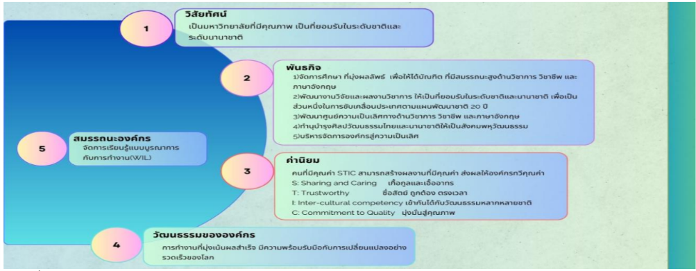 พันธกิจ วิสัยทัศน์ ค่านิยม สมรรถนะหลัก และวัฒนธรรมของมหาวิทยาลัย มีดัง ภาพที่ op1 ก 2-1