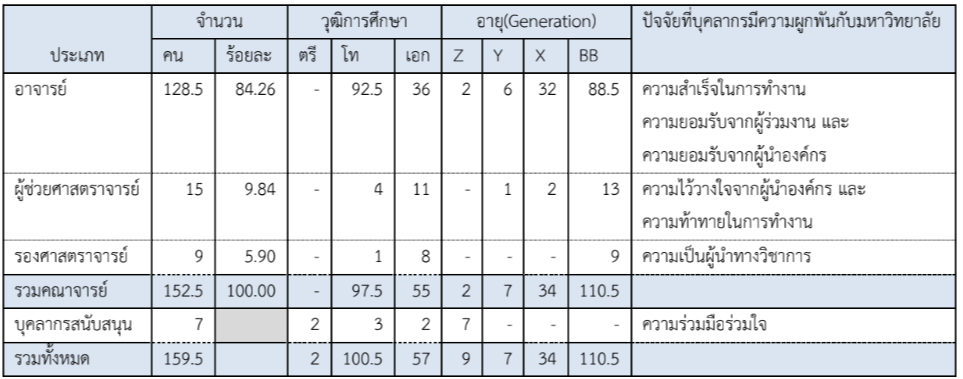 ทายในการทํางาน และความเป็นผู้นําทางวิชาการ ทั้งนี้ขึ้นอยู่กับ กลุ่ม/ประเภทบุคลากร และ ช่วงวัย
