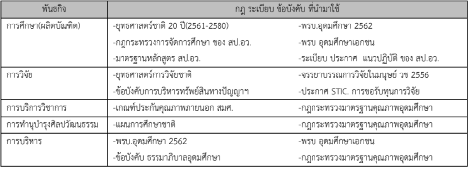 มหาวิทยาลัย ใช้ พรบ. กฎกระทรวง ข้อบังคับ ประกาศ สําหรับการจัดการศึกษาระดับอุดมศึกษา
