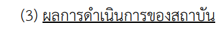 | (3) ผลการดำเนินการของสถาบัน (1 คะแนน) | / | 1 |