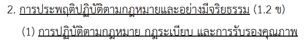 | 2. การประพฤติปฏิบัติตามกฎหมายและอย่างมีจริยธรรม | ||