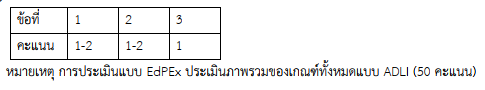 | EdPEx 3 ข้อ | 1.2ก(1),1.2ก(2),1.2ก(3),1.2ข(1),1.2ข(2), 1.2ค(1),1.2ค(2) | ร้อยละ 30 (จาก 50) | 15 คะแนน |