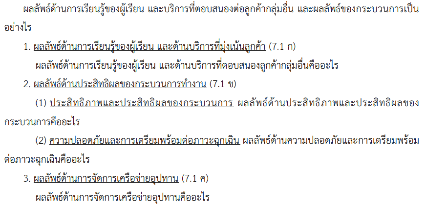 Criteria 7.1 ผลลัพธ์ด้านการเรียนรู้ของผู้เรียน และบริการที่ตอบสนองต่อลูกค้ากลุ่มอื่นและด้านกระบวนการ (Student Learning, Customer-Focused Service Results, Process Results)