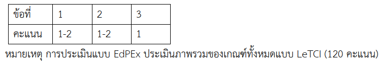 EdPEx 3 ข้อ7.1ก, 7.1ข(1), 7.1ข(2), 7.1คร้อยละ 30 (จาก 120)36 คะแนน