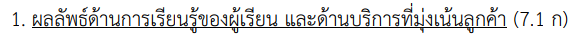 1. ผลลัพธ์ด้านการเรียนรู้ของผู้เรียน และด้านบริการที่มุ่งเน้นลูกค้า